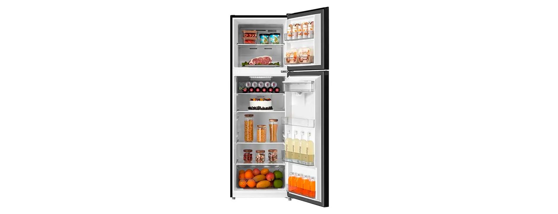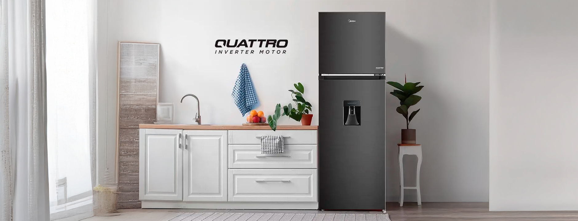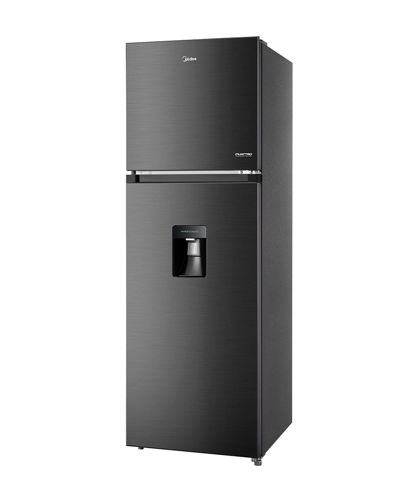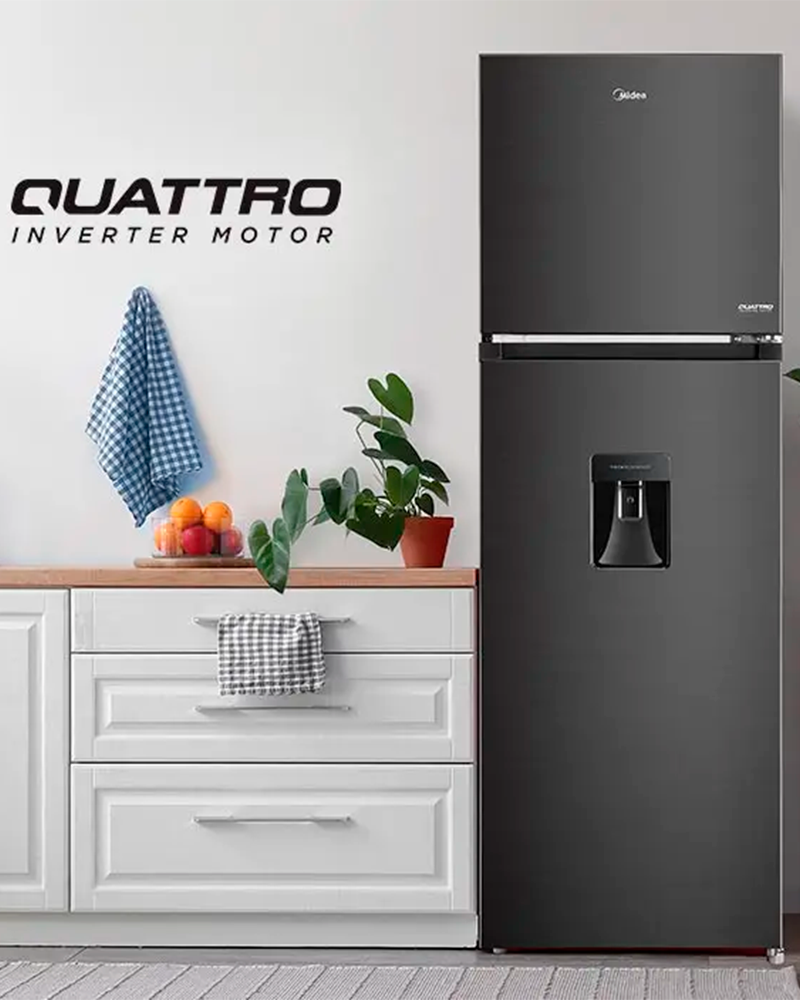 Refrigerador Midea MDRT385MTM28COD de 264 litros netos en elegante acabado Jazz Black, tecnología Inverter Quattro que ofrece funcionamiento silencioso, eficiente y temperaturas constantes. Equipado con Multi Air Flow, filtro Active C‑Fresh, Cooling Box para carnes y Mega Ice Box para hielos grandes. Ideal para espacios medianos que buscan frescura, ahorro energético y diseño moderno.