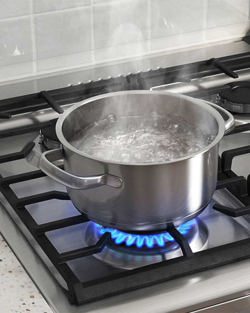 Cocina sin preocuparte por el riesgo de fugas de gas peligrosas. Un sistema de bloqueo de seguridad doble tiene una válvula de 2 capas que evita que el gas se filtre accidentalmente dentro del horno o en la placa de cocción. Y un sensor de termopar detecta rápidamente si la luz piloto del horno no está encendida y cierra la válvula de suministro de gas.