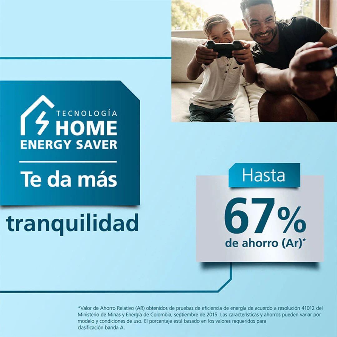 Tecnología Home Energy Saver te da tranquilidad. Ahorra hasta un 67% de energía con el compresor Eco Advance y gas refrigerante R600. Potencia de enfriamiento gracias a su sistema de escarcha inteligente que enfrían más rápido, ideal para tu hogar o tu negocio. Agua fresca en todo momento, dispensador con tanque removible de 2 litros. Cajón con topes de seguridad que brinda mayor practicidad. Su sistema de enfriamiento ofrece una mejor conservación de todos tus alimentos.