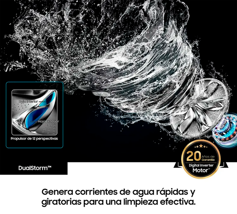 Lava de manera potente y eficiente. Dual Storm™ crea una corriente de agua en forma de vórtice para un lavado más eficaz.