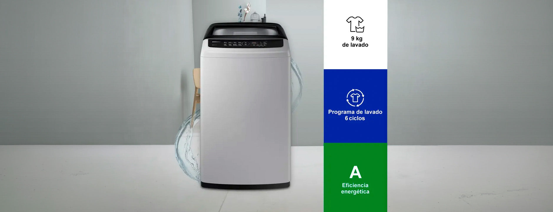 Lavadora SAMSUNG Carga Superior 9 Kilos Gris - WA90CG4240BYCO