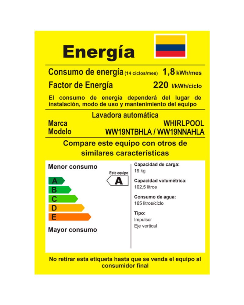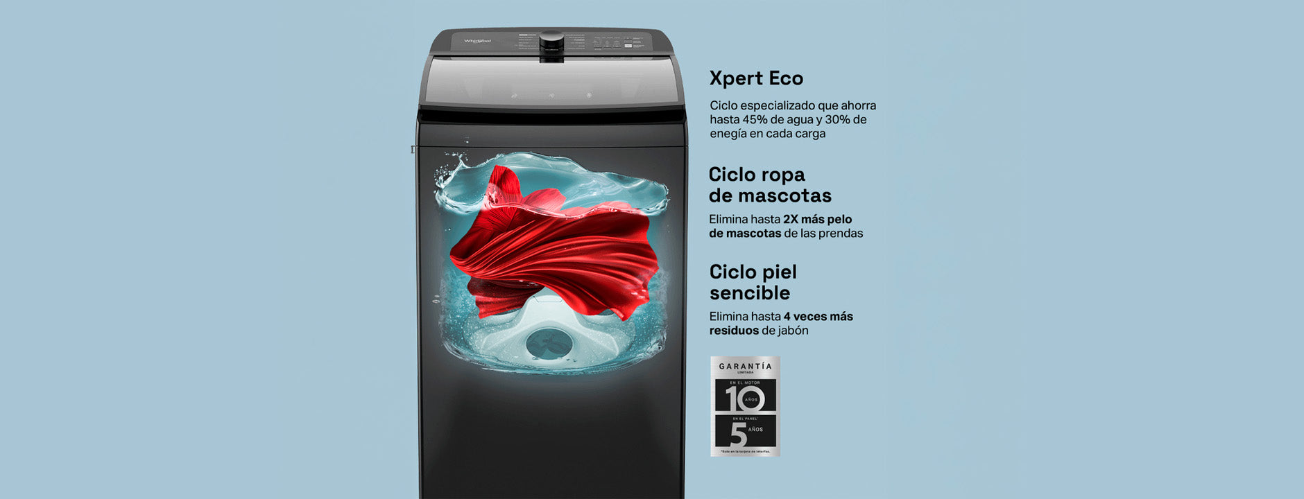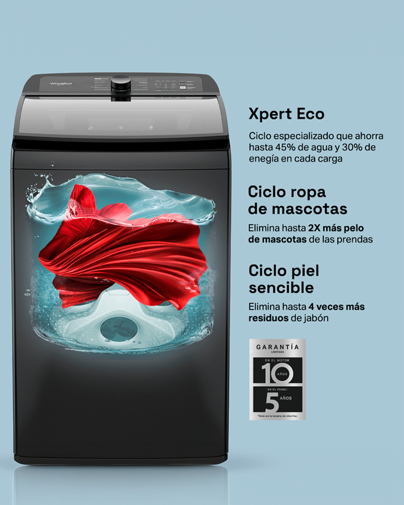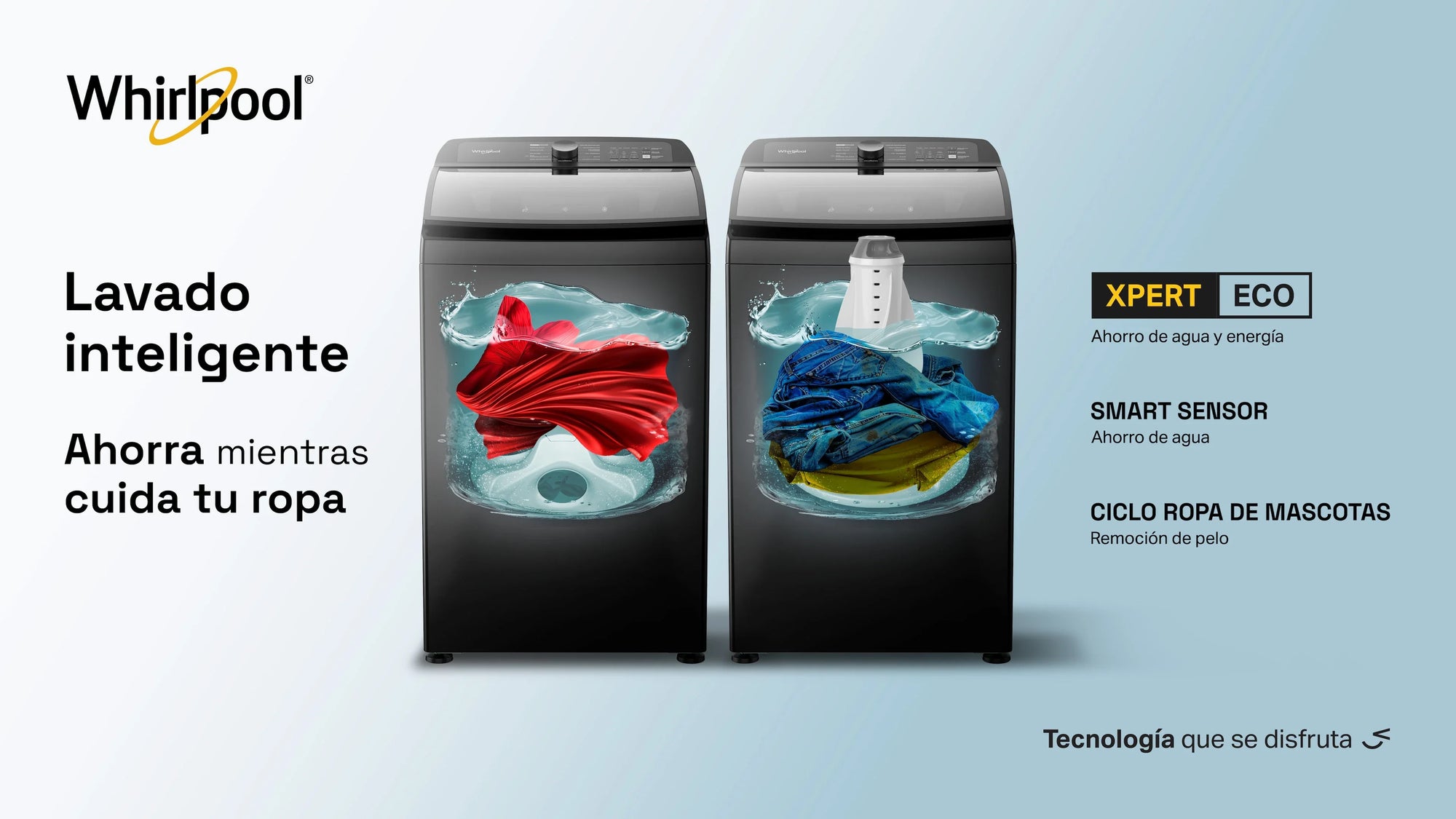 Con esta lavadora Whirlpool, tendrás un lavado inteligente que combina ahorro, tecnología avanzada y un cuidado experto para tus prendas.